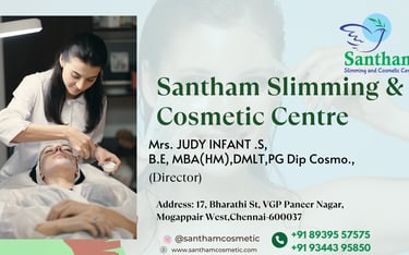Welcome to Santham Slimming & Cosmetic Centre, your trusted destination for advanced hair care, skin treatments, and weight management solutions in Mogappair West, Chennai.