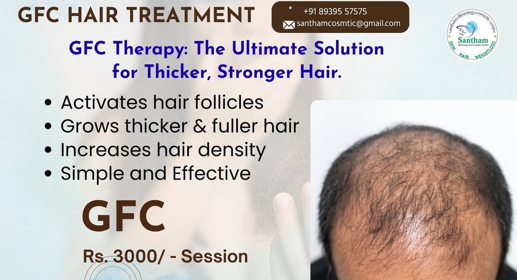 Hair fall and thinning hair can affect confidence at any age. If you are looking for a safe and effective hair regrowth treatment in Chennai, PRP and GFC therapy at Santham Slimming & Cosmetic Centre, Mogappair West offer advanced, non-surgical solutions.